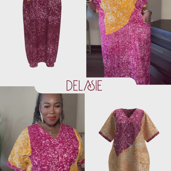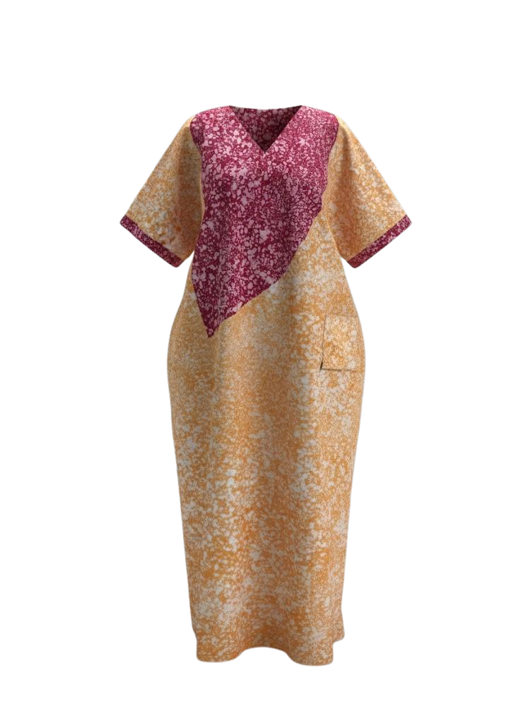 Plum and Rust Reversible Batik Moomoo Kaftan Maxi Dress